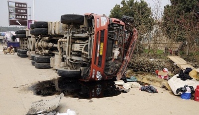 據(jù)車上師傅介紹,行駛過程中,一輛頂燈閃爍不止的路政執(zhí)法車緊追不舍,執(zhí)法車旁還有一輛民用越野車“保駕護(hù)航”。期間,路政執(zhí)法車數(shù)次將直徑約50厘米的傘狀鐵鉤拋向貨車。陳鄭紅望著報(bào)廢的大貨車。在距離朱良橋收費(fèi)站還有1公里時(shí),扔完鐵鉤后一直與貨車并行的路政執(zhí)法車和越野車再次逼到貨車前方,遠(yuǎn)遠(yuǎn)地橫在了正前方車道,所停之處距離收費(fèi)站約200米。劉弟德眼疾手快,立即往左打方向盤駛向逆行車道。貨車車長13米,碼貨后17米,加上本來就超載,拐彎時(shí),離心力急劇加大,“轟”的一下,車身朝左側(cè)翻,并在慣性的作用下往前滑行十多米。劉弟德的家屬給記者看當(dāng)時(shí)從路政執(zhí)法的車輛里面扔出來,砸到貨車引擎蓋的鐵鉤的照片。車禍發(fā)生后,剛剛還緊追不舍的路政執(zhí)法車已消失得無影無蹤。在車禍中身亡的劉弟德正值壯年,一家老小全靠他養(yǎng)活,這趟貨如果不多裝一點(diǎn)根本賺不到錢。