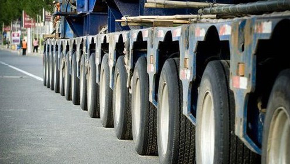 普通小車4個,貨車8到12個,6軸的半掛車最多也就22個輪子。但據(jù)報(bào)道此車有230個輪子,為兩節(jié)4線13軸的雙輪共計(jì)108個輪子,加上兩個牽引頭共計(jì)22個輪子(應(yīng)該是一個6X4的一個8X4的),一共230個輪子。