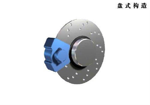 使用金屬塊(碟)而不用鼓輪,在剎車碟的兩邊都有一平坦的剎車蹄,當(dāng)剎車總泵來(lái)的油壓壓送到分缸,使剎車蹄向剎車碟夾住,以達(dá)到剎緊的效果,目前已普遍用于前輪,有的高級(jí)車裝置四輪碟式剎車,其優(yōu)點(diǎn)是作用靈敏,散熱良好,不必調(diào)整剎車間隙,保養(yǎng)容易。