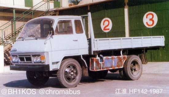 1987年江淮在原有底盤基礎(chǔ)上開發(fā)的FH142C型三噸汽車。當(dāng)年江淮加入了解放汽車工業(yè)聯(lián)營(yíng)公司(一汽集團(tuán)),成為聯(lián)營(yíng)公司內(nèi)3噸載貨汽車定點(diǎn)生產(chǎn)廠,產(chǎn)品納入解放型譜。