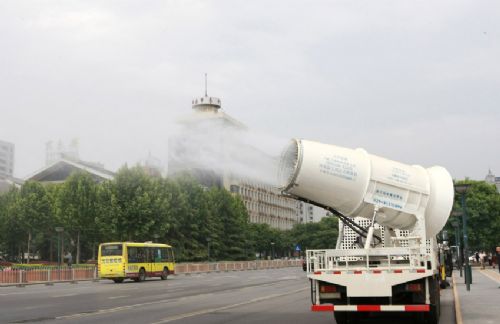 近日多家媒體報道,繼甘肅蘭州市購置了高射遠程風送式噴霧機,可將自來水霧化并噴出600米遠,有媒體稱其“可有效對抗霧霾、粉塵等”。而西安市新城區(qū)市容園林局近日也新購多功能抑塵車投入使用,該“霧炮車”重10噸,能噴灑120米遠、70米高的水霧,有噴霧降塵作用,媒體將之稱為“治霾神器”。西安環(huán)保部門采購的這臺大功率遠程噴霧除塵車,射程最大可達到120米,5月9日,“霧炮車”在西安街頭作業(yè)。當日,西安市新城區(qū)市容園林局新購置的大小兩臺多功能抑塵車投入使用。其中大型“霧炮車”重量10噸,遠距離噴霧系統(tǒng)能噴灑120米遠、70米高的水霧,有強大的噴霧降塵作用。經環(huán)保部門測試,“霧炮”可以將空氣中的PM10濃度降低15%左右。西安市相關工作人員表示,大型霧炮車花費近百萬元,主要用于降塵。有大氣治理專家稱,其只能在短時間內減少空氣中大顆粒的濃度,對降低PM10效果明顯,對降低PM2.5的效果也不錯,本月9日第一天試運行,據當天上午10時測試,啟動霧炮后3至5分鐘,現(xiàn)場PM10濃度從117降到了70,PM2.5從55降到了40。