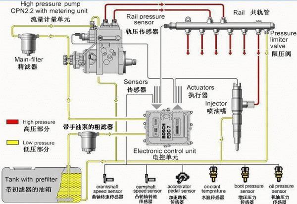 一、高壓共軌技術讓燃燒更充分,提高燃油利用率。高壓共軌是將噴油泵和共軌系統(tǒng)連接,保證共軌管道及其連接的噴油嘴保持穩(wěn)定高壓(約1600帕),燃油電控系統(tǒng)單獨控制噴油嘴開啟和關閉,確保在最正確時間點四個噴油嘴提供完全相同的油壓,以及精確的噴油量,極大提高發(fā)動機的工作效率。