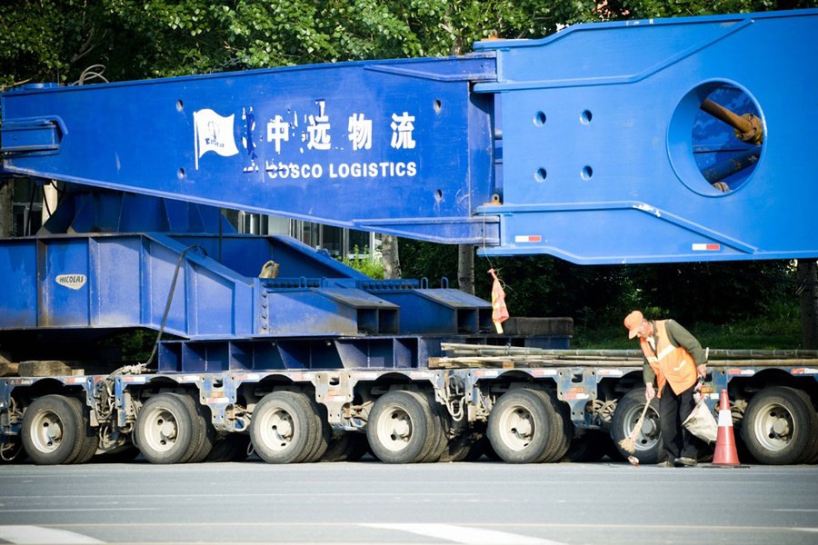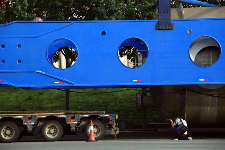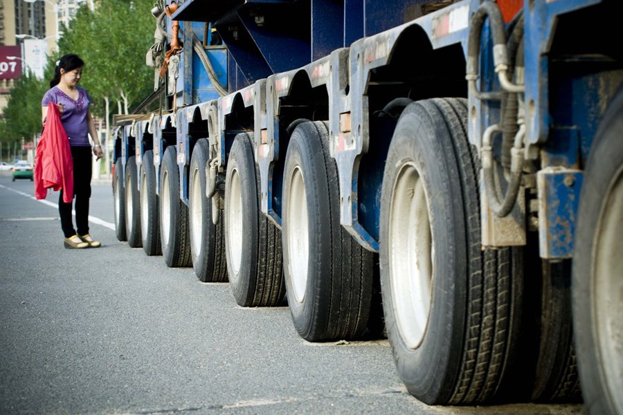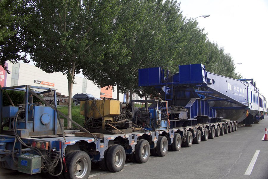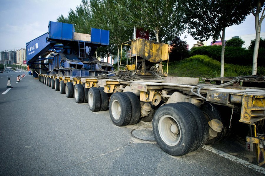 6月6日,有網(wǎng)友報料一輛有252個輪胎的“巨無霸”大貨車來到吉林市,此車車頭有12個輪,車身有240個輪,總共252個,網(wǎng)友戲稱是“成精的蜈蚣”。該大貨車車體共有30組車輪,每組8個輪胎,共計240個車輪,車體前后兩部分是平板車,中間是被安放在鋼架上的大罐,大罐呈圓柱形,外邊有一圈螺旋,全身鋼鐵,車體上印有“中運物流”字樣.據(jù)了解,此車車體加上運載物全長近90米,運載車輛是特種車輛,名稱為“橋式車組”。運載的貨物巨大,高度達(dá)5.39米,長度為29.08米。從遼寧送達(dá)吉林,路程1000多公里,而且東北地區(qū)限高為5米,所以此運輸難度巨大,而將如此龐然大物運送到指定地點,在東北三省也是第一次。據(jù)參與護送的一位交警表示,僅車組人員就有40余名,護送的隊伍中有吊車、平板車、小型貨車和客車等車輛,車隊約有20輛。