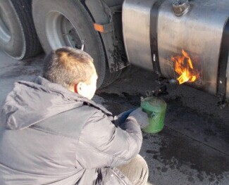 如果冬季行車前期功課做得不到位,柴油一旦上凍,那么這時(shí)很多人都會選擇用噴燈烤油箱,冬季隨車備個(gè)噴燈很有必要,但是在使用中千萬要謹(jǐn)慎操作,注意安全。