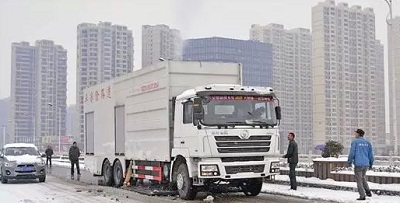 楚天快報訊 近日,中國專用汽車之都--湖北隨州的專用汽車廠家自主研發(fā)、全國首創(chuàng)的蒸汽式除冰車大顯身手,除冰車經(jīng)過的車道,冰雪一掃而光。