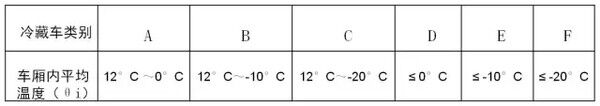 對于運輸易腐食品的冷藏車:當(dāng)環(huán)境溫度為30°C時,按冷藏車車廂內(nèi)平均溫度保持的溫度范圍,分為以下六類: