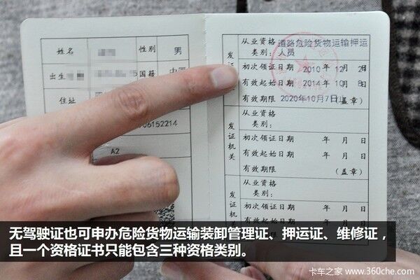 從上面可以了解到,從業(yè)資格證并不一定必須擁有駕駛證,無(wú)駕駛證也可申辦危險(xiǎn)貨物運(yùn)輸裝卸管理證、押運(yùn)證、維修證。