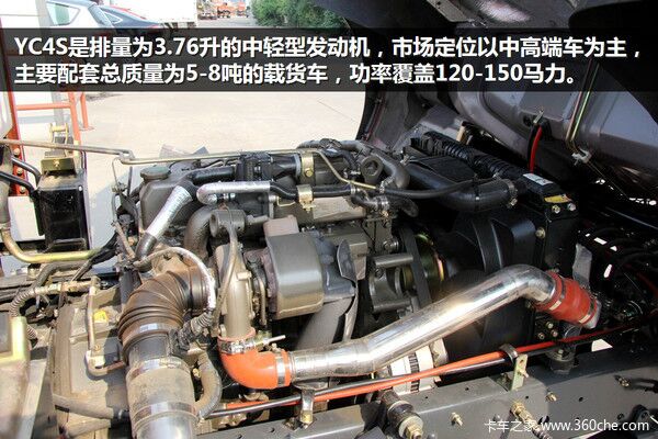 YC4S是排量為3.76升的中輕型發(fā)動機,市場定位以中高端公路車為主,主要配套總質(zhì)量為5-8噸的載貨車,功率覆蓋120-150馬力,采用共軌+EGR+DOC技術(shù)路線達到國四技術(shù)標(biāo)準(zhǔn)。采用干式缸套,可維修性好,噴油器安裝采用了銅套結(jié)構(gòu),缸蓋工藝性好,冷卻快。