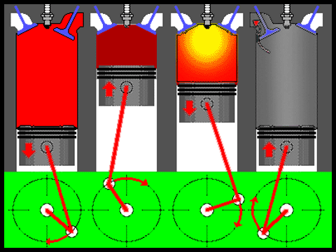 目前的吸污車吸糞車大部分都是柴油機,絕大部分都是內(nèi)燃機四缸或者六缸4沖程發(fā)動機。原理動態(tài)圖如下: