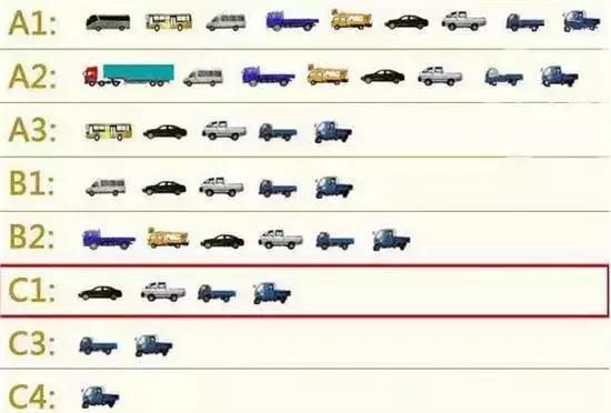 除了上面這個范疇,C1駕駛證還可以開C2、C3、C4的準駕車型。