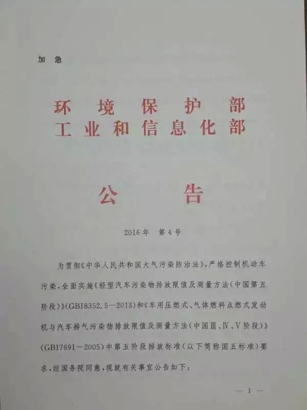 行業(yè)動態(tài)當(dāng)前位置:首頁> 新聞資訊 >> 行業(yè)動態(tài) >> 國五來了:環(huán)保部工信部關(guān)于國五實施的公告