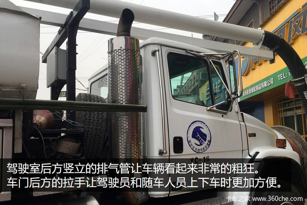 駕駛室后方豎立的排氣管讓車輛看起來非常的粗狂,外面鍍鉻的防燙網(wǎng)能夠防止操作人員在管道清污的時(shí)候被意外燙傷。貫通車門后方的拉手讓駕駛員和隨車人員在上下車的時(shí)候更加方便。引擎蓋可以向前掀起用來對發(fā)動機(jī)以及相關(guān)部件進(jìn)行檢修,橡膠材質(zhì)的膠條固定之后能夠減小車型行駛時(shí)引擎蓋的震動噪聲。