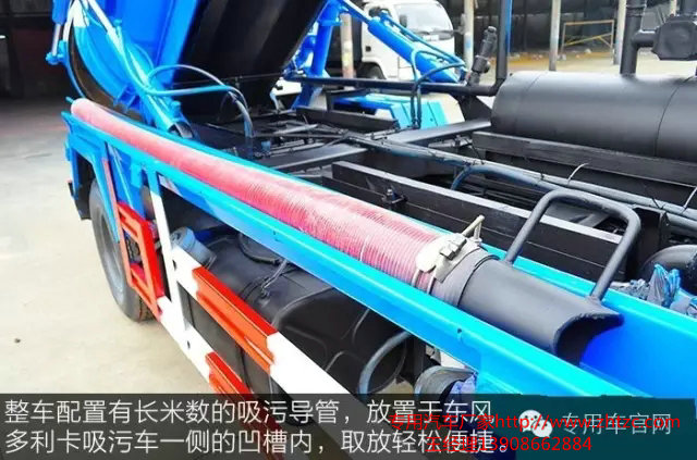整車配置有長(zhǎng)米數(shù)的吸污導(dǎo)管,放置于東風(fēng)多利卡吸污車一側(cè)的凹槽內(nèi),取放輕松便捷。