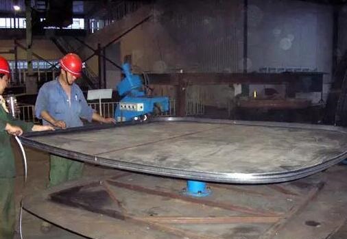 經(jīng)過開平機(jī)處理過的鋼材就可以直接進(jìn)入生產(chǎn)車間了。罐車的封頭形狀是蝶形或者是弧形的,普通的剪板機(jī)裁剪不出這樣的形狀,這時(shí)需要用到等離子切割機(jī)。等離子切割的好處就是費(fèi)時(shí)少,能夠切割出各種形狀。不過據(jù)說,在沒有等離子切割機(jī)之前,罐車的封頭全靠設(shè)計(jì)師勾勒,精細(xì)度完全無法保證,有時(shí)候光畫一個(gè)封頭就得大半天的時(shí)間。