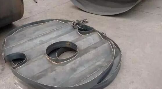 罐車內(nèi)部的波浪板制作需要用的機(jī)器不同一些,首先同樣是通過等離子切割機(jī)裁剪出弧形板塊,然后是通過折彎?rùn)C(jī)把弧形鋼板變成波浪的形狀。而波浪板中的人孔則是液壓機(jī)一次性沖壓成型的。至于波浪板、人孔的包邊和炮筒則需要用到剪板機(jī)。