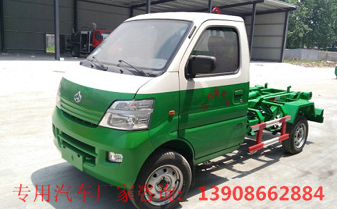勾臂式垃圾車,采用以箱換箱的工作形式,結(jié)合高新設(shè)計可伸縮的鉤臂,實現(xiàn)垃圾箱的二次吊裝,自吊上放下,可自行傾倒垃圾。該車結(jié)構(gòu)簡單,操作穩(wěn)定方便,裝卸效率高,機械化程度高,節(jié)省人力。缺點是工作時需要較為寬敞的場地,工作環(huán)境比較受限制。