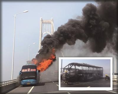南京四橋高速一大客車昨自燃 所幸無人傷亡