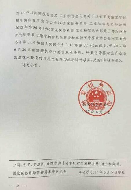 二、生產(chǎn)(改裝)或進(jìn)口的車輛符合本公告第一條規(guī)定的,按《國(guó)家稅務(wù)總局 工業(yè)和信息化部關(guān)于設(shè)有固定裝置非運(yùn)輸車輛信息采集的公告》(國(guó)家稅務(wù)總局 工業(yè)和信息化部公告2015年第96號(hào))規(guī)定提交信息、照片及資料掃描件。