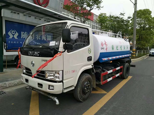今天灑水車廠家給大家介紹的這款國(guó)五東風(fēng)多利卡灑水車,罐體容積5立方米,該車具有免征公告(可免交車輛購(gòu)置稅)。采用武鋼4mm優(yōu)質(zhì)碳鋼板一次卷壓成型,完全做到無(wú)縫成型。罐體內(nèi)設(shè)多道防波隔板,采用高壓氣體試漏檢測(cè),使罐體具有強(qiáng)度高,重心穩(wěn),車輛運(yùn)載安全平穩(wěn)。罐體外表為烤漆,罐體及各保險(xiǎn)杠貼紅白色視覺(jué)反光條,罐體兩側(cè)噴綠化灑水車字樣。