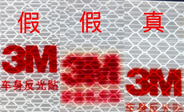 反光貼作為卡車必備的小配件,雖然看上去不起眼,但是因?yàn)橐?guī)定每輛車都必須要設(shè)置,所以在市場上也充斥著大量的假貨。以常見的3M反光貼為例,真?zhèn)巫蠲黠@的區(qū)別就是通過反光貼上的信息標(biāo)識進(jìn)行判斷。正品3M反光貼紙會清晰的標(biāo)注著制造商標(biāo)識、3C認(rèn)證標(biāo)識以及產(chǎn)品等級三種信息,如果沒有任何信息或者信息不全的就肯定是假貨。