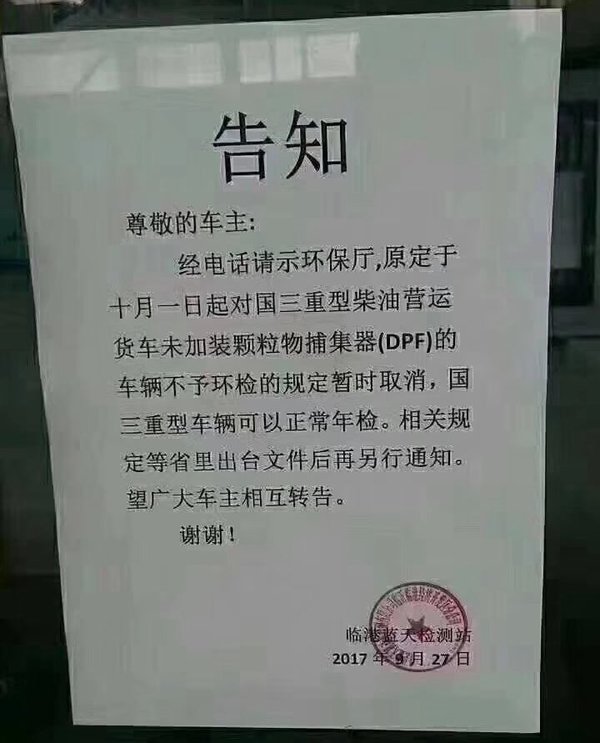 自山東多地出臺國三重型車加裝DPF才可以環(huán)檢的規(guī)定出臺以來,山東卡友圈里鬧得沸沸揚揚,多方就“是否加裝DPF”的問題也是莫衷一是。雖然該檢測站發(fā)文取消加裝DPF,但是文尾的“相關(guān)規(guī)定等省里出臺文件后再另行通知”還是讓人忐忑不已。(文/管冠強)