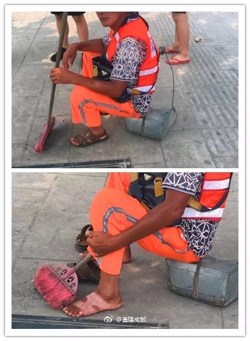 2017年7月29日,成都室外常有40度的高溫,炎熱無(wú)比!網(wǎng)友在動(dòng)物園附近拍到一位環(huán)衛(wèi)工人大爺,借著工作間隙在樹(shù)蔭下休息。整個(gè)人都被曬黑,當(dāng)然脫下涼鞋后,看的更讓人心酸…