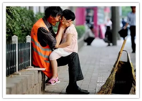 2011年5月7日,江蘇徐州煤建路,一清潔工人坐在路邊摟著自己的孫女嬉笑。當(dāng)日正值周六,小孫女不上學(xué),來(lái)到路邊尋找爺爺。女孩的父母在北京打工,小孫女從小隨著爺爺奶奶生活。這張照片曾在網(wǎng)絡(luò)上走紅,而在第二年4月,這位老人因患惡性淋巴腫瘤去世。