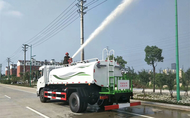 12噸東風(fēng)天錦灑水車帶自流閥,消防接口。帶自吸泵,可將池塘的水直接吸入罐體內(nèi)也可直接從城市街道消防栓上連接注水,吸入罐體內(nèi)。灑水車也可做噴藥車使用,可根椐用戶要求進(jìn)專業(yè)噴藥防腐處理,也可做企業(yè)單位運(yùn)水用,緊急時(shí)可做消防車使用。對(duì)灑水車有特殊要求的用戶請(qǐng)?zhí)崆案嬷?,可為用戶提供加裝各種附件,管道及多個(gè)噴頭。