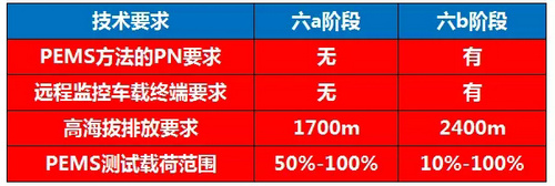 國六分為a階段和b階段。2020年1月1日執(zhí)行國六 a階段;2023年1月1日執(zhí)行國六 b階段。在b階段,增加了整車試驗PN(粒子數(shù)量)要求,增加遠程監(jiān)控車載終端要求,提升了海拔高度以及擴大了PEMS測試的載荷范圍。