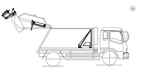 若不需要再次裝載,旋轉(zhuǎn)翻桶操作旋鈕至右上翻位置,翻桶機(jī)構(gòu)翻起,然后松開(kāi)取力器,壓縮式垃圾車整車方可移動(dòng)。