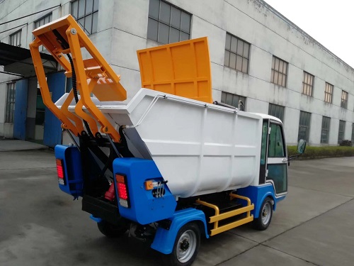 電動后裝吊桶式垃圾車是近年出現的一種新型垃圾收集車,后掛桶結構,整車自身高度較低,適合下地下室,方便傾倒于后裝壓縮式垃圾車后裝填斗內或者移動式壓縮垃圾站、固定式壓縮垃圾站內,方便轉運,自裝卸不需人力,