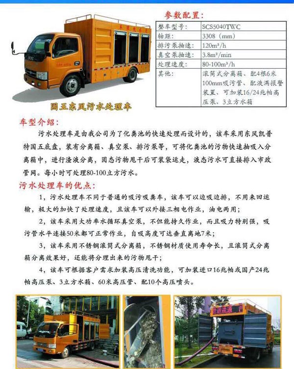 東風(fēng)藍(lán)牌污水處理車性能特點(diǎn)
