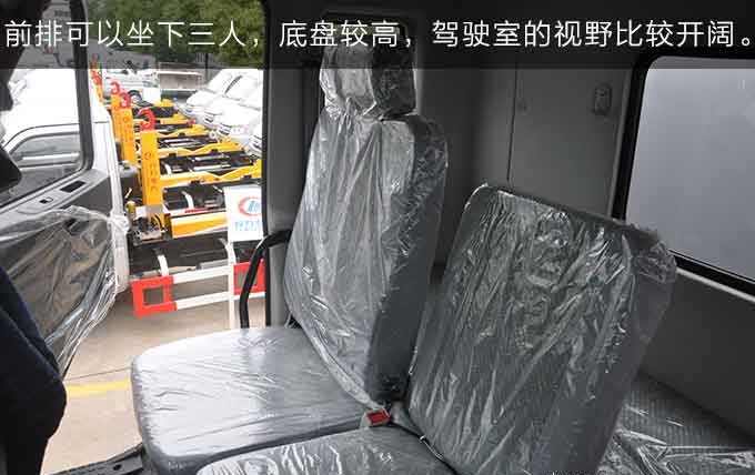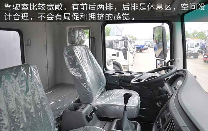 打開(kāi)東風(fēng)多利卡D9吸污車的車門(mén),可以看到這款車的駕駛室比較寬敞,有前后兩排,前排能同時(shí)坐下三人,后排是休息區(qū),空間設(shè)計(jì)合理,不會(huì)有局促和擁擠的感覺(jué)。因?yàn)榈妆P(pán)較高,所以,駕駛室的視野比較開(kāi)闊。
