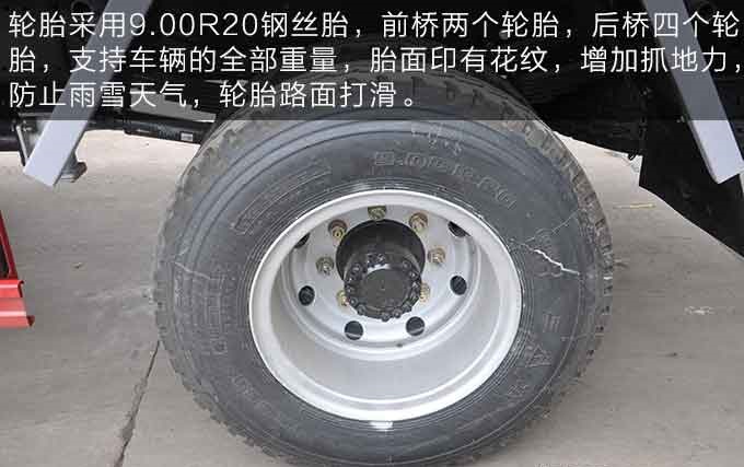 輪胎采用9.00R20鋼絲胎,前橋兩個(gè)輪胎,后橋四個(gè)輪胎,支持車輛的全部重量,胎面印有花紋,使輪胎與地面有更好的附著性能,增加抓地力,防止雨雪天氣,輪胎路面打滑。東風(fēng)多利卡D9吸污車標(biāo)配一條備胎,安置在大梁尾部,拿取方便。節(jié)省空間的同時(shí)也便于及時(shí)更換,保障了行車過程中出現(xiàn)爆胎等特殊情況時(shí),也能輕松從容應(yīng)對。
