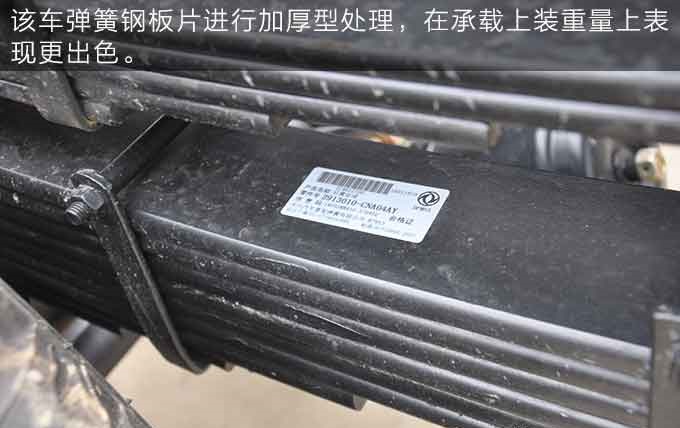 該車彈簧鋼板片進(jìn)行加厚型處理,在承載上裝重量上表現(xiàn)更出色。