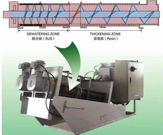 1、濃縮:當(dāng)螺旋推動(dòng)軸轉(zhuǎn)動(dòng)時(shí),設(shè)在推動(dòng)軸外圍的多重固活疊片相對(duì)移動(dòng),在重力作用下,水從相對(duì)移動(dòng)的疊片間隙中濾出,實(shí)現(xiàn)快速濃縮。