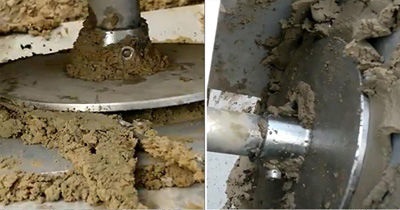 2、脫水:經(jīng)過(guò)濃縮的污泥隨著螺旋軸的轉(zhuǎn)動(dòng)不斷往前移動(dòng);沿泥餅出口方向,螺旋軸的螺距逐漸變小,環(huán)與環(huán)之間的間隙也逐漸變小,螺旋腔的體積不斷收縮;在出口處背壓板的作用下,內(nèi)壓逐漸增強(qiáng),在螺旋推動(dòng)軸依次連續(xù)運(yùn)轉(zhuǎn)推動(dòng)下,污泥中的水分受擠壓排出,濾餅含固量不斷升高,最終實(shí)現(xiàn)污泥的連續(xù)脫水。