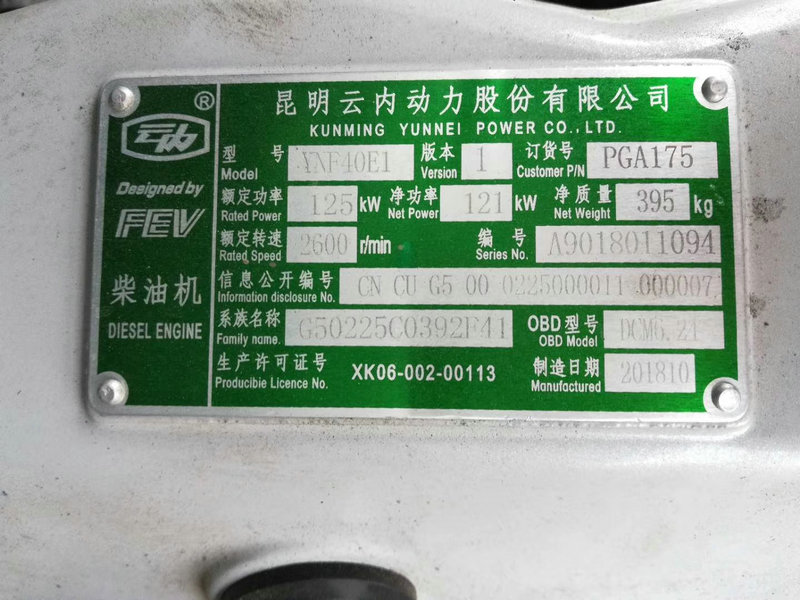 1,正宗云內(nèi)170馬力發(fā)動(dòng)機(jī)(YNF40E1)國(guó)五柴油發(fā)動(dòng)機(jī);