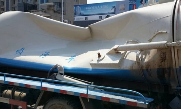 吸污車吸糞車的罐體被吸癟,原因主要有兩個(gè)方面。一是罐體材質(zhì)和厚度不達(dá)標(biāo),抗壓抗屈服強(qiáng)度不夠;再一個(gè)主要是因?yàn)檎婵粘槲鼤r(shí),沒有打開進(jìn)液管閥門,或者被抽吸的液體粘稠,不能及時(shí)被抽進(jìn)罐內(nèi)補(bǔ)充罐內(nèi)氣壓。