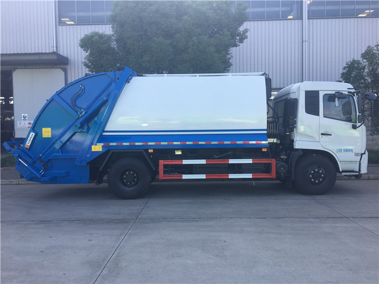 1:效率高,壓縮式垃圾車由底盤、箱體、料斗、刮板、推板、油缸、多路閥、油泵、PLC等組成,垃圾是由后翻轉(zhuǎn)機構(gòu)把垃圾桶舉升倒入料斗,再由刮板將垃圾刮入垃圾箱內(nèi),翻轉(zhuǎn)機構(gòu)可同時裝2個240升國標垃圾桶,完成 一次垃圾裝入的時間大約是15秒,一個勞動力完全可操控一臺車子垃圾的裝卸料,大大節(jié)省人力