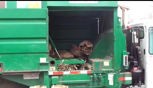 上圖展示的垃圾車自身處理垃圾的一個能力。從內(nèi)部裝置來看,像極了壓縮式垃圾車,只不過垃圾處理的地方由車廂尾部改成了側(cè)面。