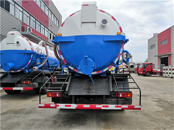 東風天錦10方吸污車罐體容積10方,形狀為圓柱形,采用武鋼6mm厚優(yōu)質(zhì)碳鋼鋼板,配SK-15水循環(huán)真空吸污泵(可選裝偉業(yè)雙聯(lián)油泵),罐體前部帶吸污窗,洗手裝置,舉升裝置,吸污管8米一根,罐體多種顏色選擇,其余按廠內(nèi)標準配置制作。隨車配置大功率真空吸污泵和優(yōu)質(zhì)液壓系統(tǒng),罐體封頭一次壓鑄成型、罐體可后開、雙頂自卸。罐內(nèi)污物可通過后蓋直接傾倒,具有真空度高(比吸糞車的吸力更大)、噸位大、效率高、用途更廣泛的特點。