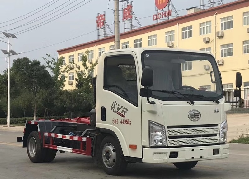 下面這個是解放龍V,這兩款都是一汽青島的主要產(chǎn)品,市場口碑不錯。解放龍V勾臂式垃圾車的配置和東風(fēng)天錦相當(dāng),和解放J6也是不相上下,用戶可以根據(jù)自己的喜好來選擇。