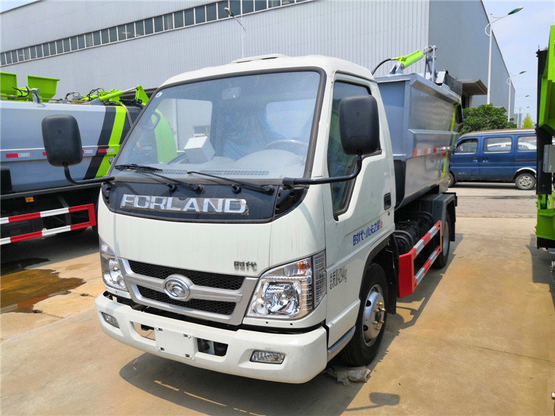 福田時代4方藍牌垃圾轉運車后高位掛桶垃圾車產品圖片展示: