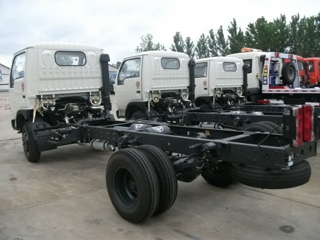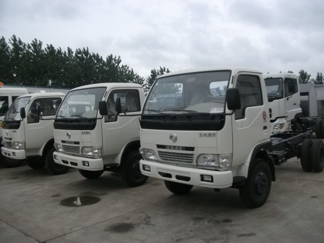 東風(fēng)輕型折臂自動勾舉掛桶式自裝卸垃圾車采用東風(fēng)公司福瑞卡系列(小霸王、勁卡)垃圾車專用底盤。此底盤配裝東風(fēng)朝陽95馬力發(fā)動機,軸距3300mm,是最常用的一款小型垃圾車底盤。外形美觀,尺寸適中,非常適合小區(qū)和城市道路行駛。下面是此款底盤圖片: