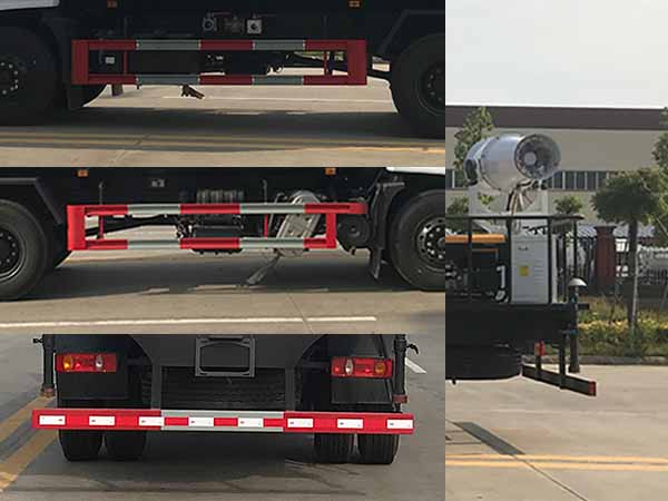 整車備注:1.該車主要用于城鄉(xiāng)園林綠化灑水;主要專用裝置為噴灑總成;罐體有效容積10.48立方米;2.隨底盤選裝駕駛室前臉造型及燈具造型,選裝不同外形管道,選裝風(fēng)機樣式,選裝高射炮樣式,選裝后噴霧,選裝左側(cè)噴灑,選裝右側(cè)噴灑,選裝后平臺樣式,選裝LED箭頭指示燈,選裝右側(cè)管道;3.僅選用3950mm軸距,罐體外形尺寸(長×長軸×短軸)(mm):(4550×2350×1450,4150×2400×1550);4.側(cè)防護,后防護材料為Q235;連接方式:焊接加螺栓連接,后部防護裝置斷面尺寸(寬×高)60×120(mm),后部防護離地高度:450mm.5.ABS,型號/生產(chǎn)廠家:3631010-C2000/東科克諾爾商用車制動系統(tǒng)(十堰)有限公司,ABS-E 4S/4M/威伯科汽車控制系統(tǒng)(中國)有限公司.