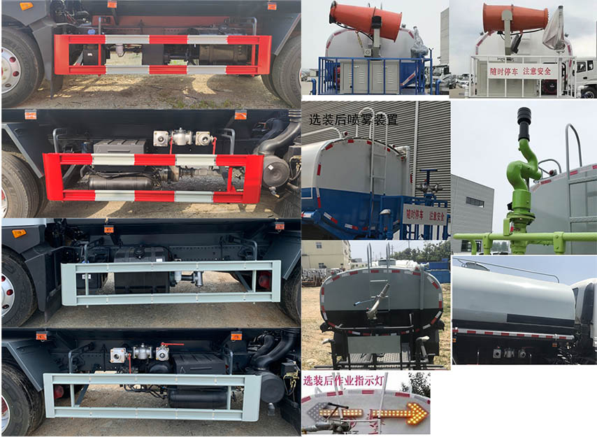 整車備注: | 1.該車主要用于城鄉(xiāng)園林綠化灑水;主要專用裝置為噴灑總成;罐體有效容積11.88立方米;2.隨底盤選裝同系列的高頂駕駛室,選裝不同外形管道,選裝風(fēng)機樣式,選裝高射炮樣式,選裝后噴霧,選裝左側(cè)噴灑,選裝右側(cè)噴灑,選裝后平臺樣式,選裝LED箭頭指示燈,選裝右側(cè)管道;3.整車長度/軸距/罐體外形尺寸(長×長軸×短軸)的對應(yīng)關(guān)系為(mm):8460/4500/(5150×2350×1450,4700×2400×1550),7910/3950/(4700×2400×1550);4.側(cè)防護,后防護材料為Q235;連接方式:焊接加螺栓連接,后部防護裝置斷面尺寸(寬×高)60×120(mm),后部防護離地高度:450mm;5.ABS系統(tǒng)控制器型號/廠家:J ABS/焦作博瑞克控制技術(shù)有限公司 | ||